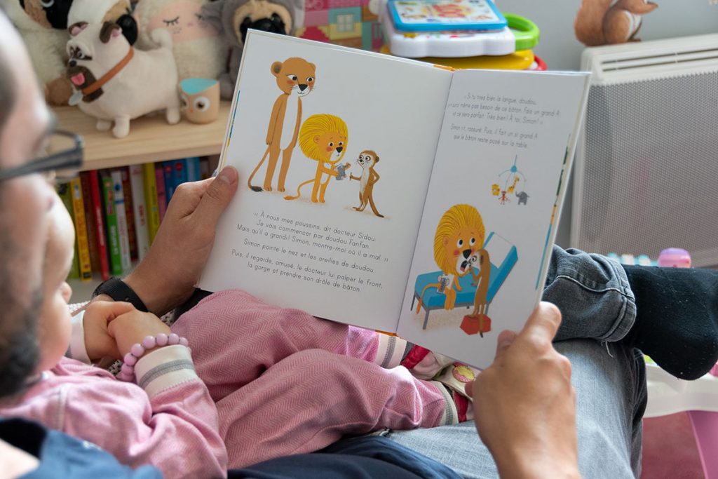 Les dessins sont assez grands, mignons et surtout colorés ! C’est l’histoire d’un petit lion (Simon) qui est malade mais qui a peur du docteur donc rechigne à s’y rendre. Le docteur en question arrive à rassurer le bébé lion, à trouver des petites techniques amusantes pour réussir à pratiquer son examen ! Ce livre peut donc en effet être vraiment intéressant si votre enfant a peur du docteur… (Ce qui est le cas de ma fille d’ailleurs, mais je pense que ce livre n’y changera pas grand chose, elle est encore trop petite pour assimiler tout cela!). 😏
