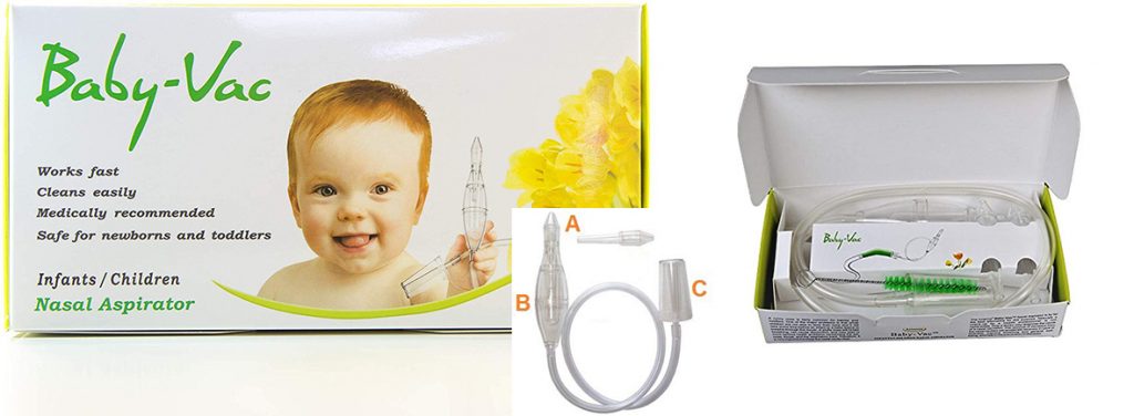 [voir ici]. Le 2ème mouche bébé pour lequel j’ai opté. Niveau efficacité, vous ne trouverez pas mieux ailleurs ! Je vous le garanti. Pourquoi je ne l’utilise plus? Comme son nom l’indique, ce mouche bébé se fixe à un aspirateur, « malheureusement », nous ne possédons plus d’aspirateur classique (avec fil). L’embout à beau s’adapter à notre sans fil, cela ne fonctionne pas correctement. et quand bien même, niveau praticité… on passe ! Du coup, nous sommes déçus de ne plus pouvoir l’utiliser, d’autant plus que la miss avait fini par l’accepter et ne se débattait plus du tout lors des mouchages de nez… ☹ Ses rhumes ne faisaient vraiment pas long feu avec ça ! Son efficacité est vraiment impressionnante (tout comme le principe, je l’avoue 😆, ça peut faire peur au début, mais c’est secure) je vous le jure ! Et ce, très rapidement car en à peine un passage sous la narine, un paquet de morve en sort (ragoutant n’est-ce pas 😏) ! En résumé, même s’il est vrai que c’est vraiment très pénible de devoir garder son gros aspi sous la main en période de rhume, c’est le mouche bébé que je vous recommande, à condition d’avoir un aspirateur classique, cela va de soit!).