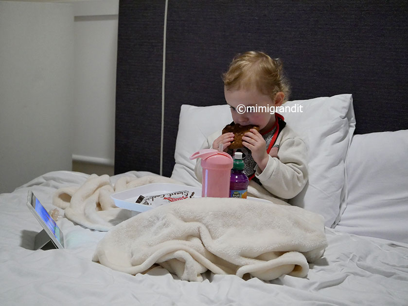 Rien ne s’est vraiment passé comme prévu: grosse averse et un bébé épuisé par sa folle journée au Paultons Park (les parents également). Nous avons donc opté pour le premier Uber Eat de notre vie, mangé directement au lit ! 😅