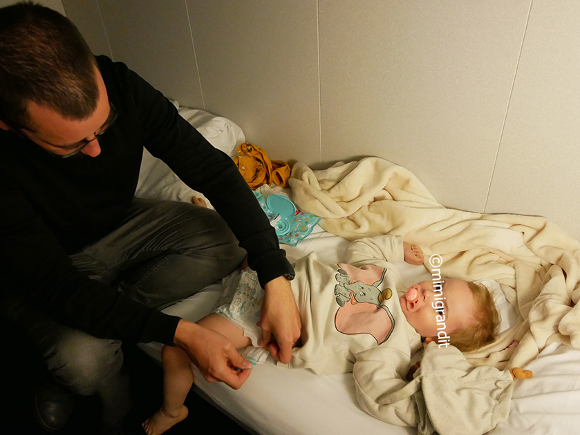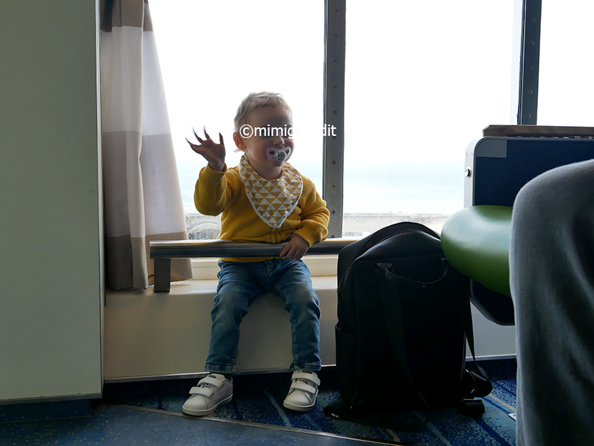 Départ du Ferry à 22h (heure anglaise) pour arriver à 8h (heure française) le lendemain. Retour beaucoup plus appréciable, en cabine où bébé n’a fait que dormir et où nous avions des médicaments contre le mal de mer contrairement à l’aller où nous étions tous malade à en crever ! 😭