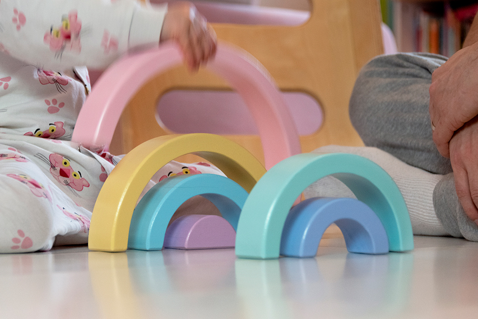 Pour la chambre de Mimi, j’ai opté pour ce joli arc-en-ciel en bois. 2 en 1: objet déco et objet de jeu ! 🤪 Je l’aime beaucoup (voir ici – 18€).