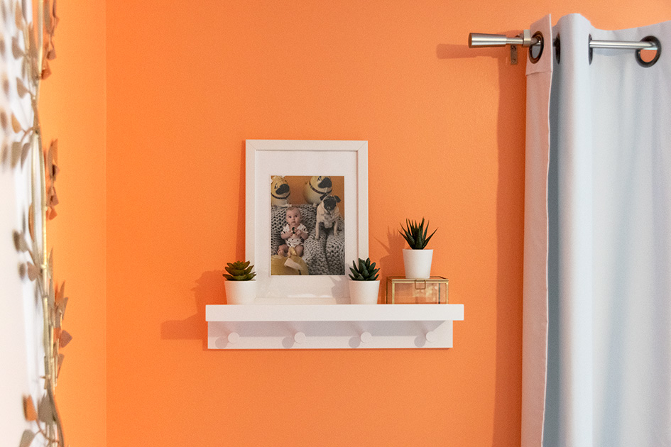 Pour la chambre parentale, j’ai opté pour une petite étagère murale avec 4 patères (27€, voir ici).
