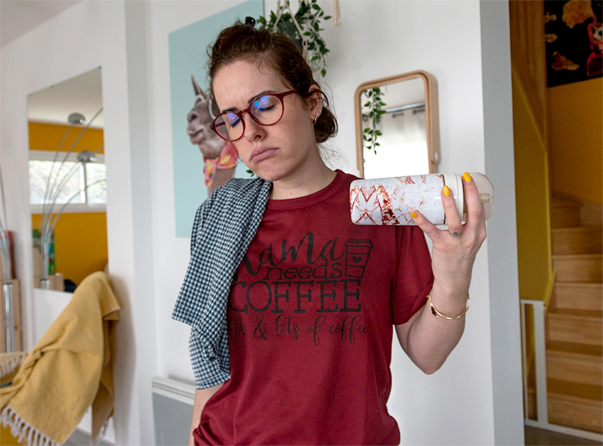 Tee-shirt « Mama needs coffee… lots & lots of coffee » disponible ici (2€). Même si je n’aime pas le café, il me va si bien 😂 (je l’ai pris en taille M) !