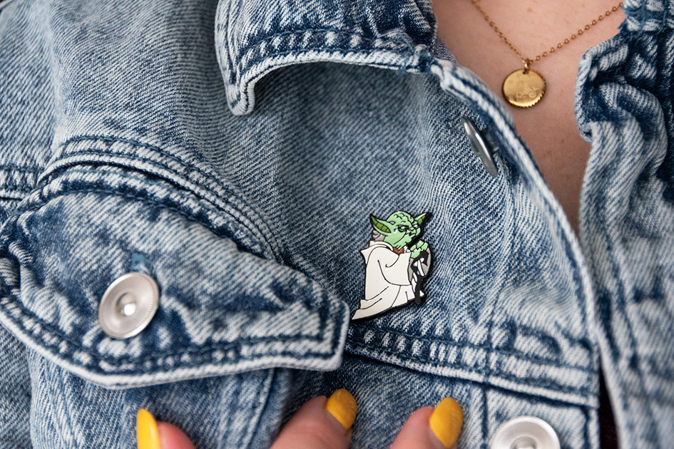 Sur Wish vous trouverez de nombreux Pin’s, beaucoup trop mignons ! Comme par exemple ce pin’s Yoda (3€, voir ici). Le top sur une veste en jean (encore mieux en accumulation avec d’autres pin’s). 😎