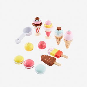 Set de glacier en bois: esquimaux, cornets, macarons givrés ou simples boules glacées + accessoires. 20,99€ (prix membre Vertbaudet)